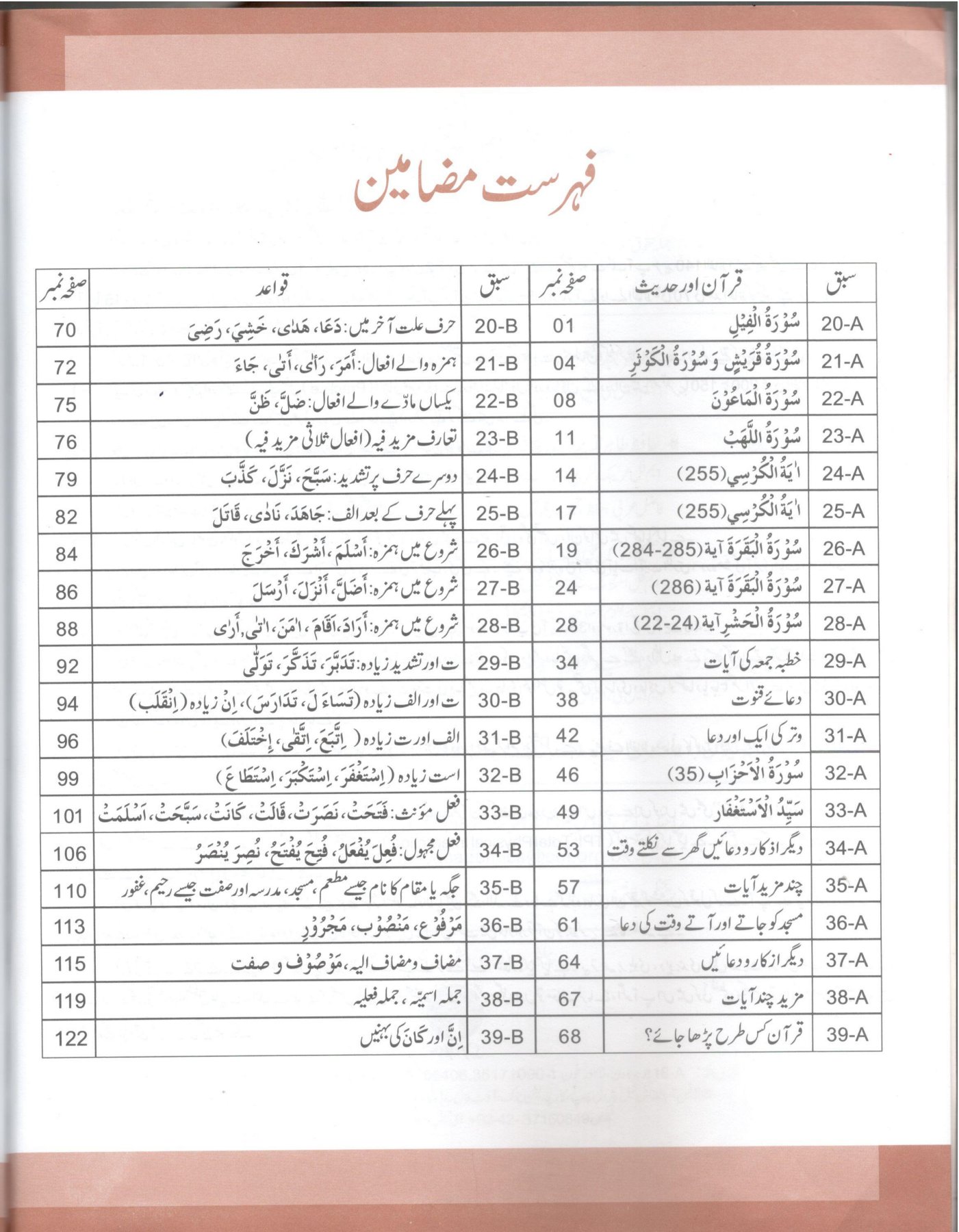 - The book covers Arabic grammar, vocabulary, and essential prayers.